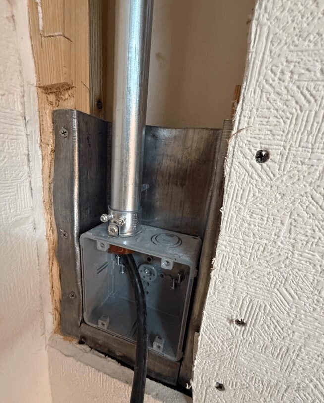 ▲ 壁を開けてコンセントボックスを設置