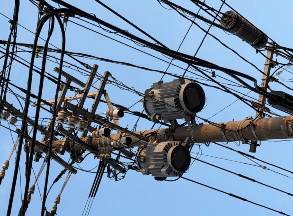 ▲ 柱上変圧器と配線の様子