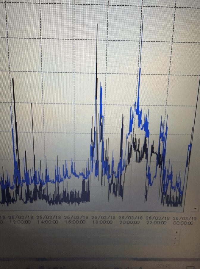 ▲ 約1週間の計測結果(青:R相、黒:T相)