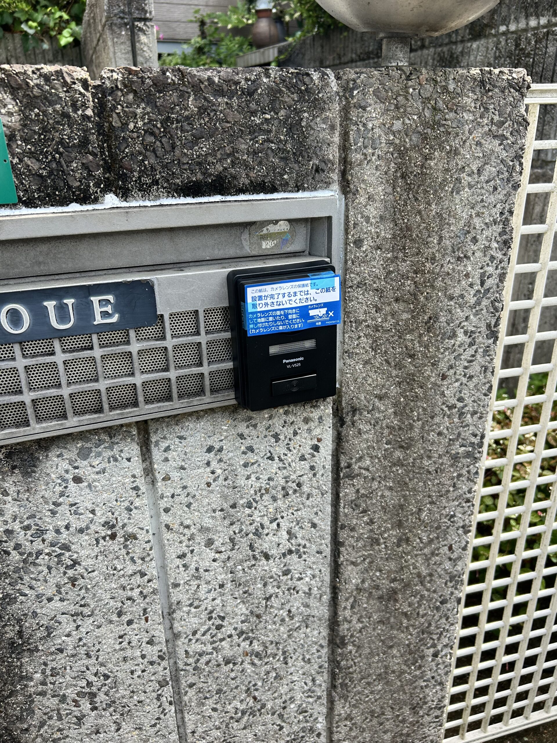 インターホンからカメラドアホンへ取り替えのご依頼。今回は玄関門に埋め込まれているインターホンをカメラドアホンへ。