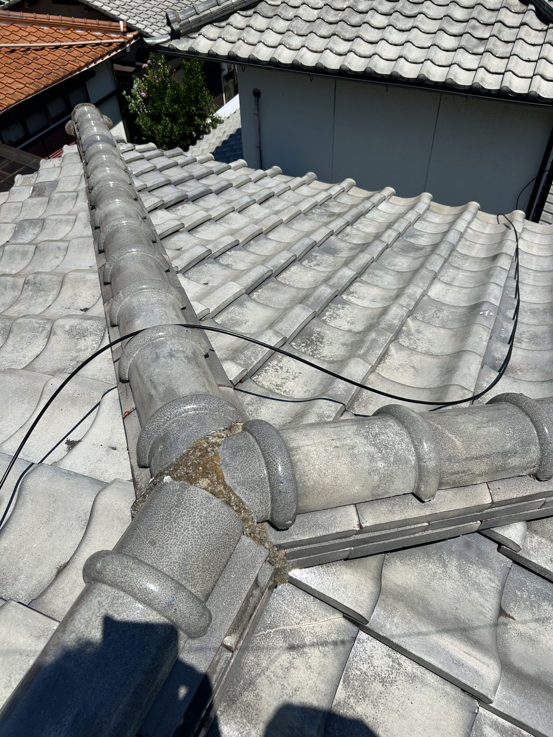 さらに屋根上同軸ケーブルが激しく劣化夏場屋根瓦は100℃近く高温になり雨風さらされ普通なら取り替えるべきところもそのまま。