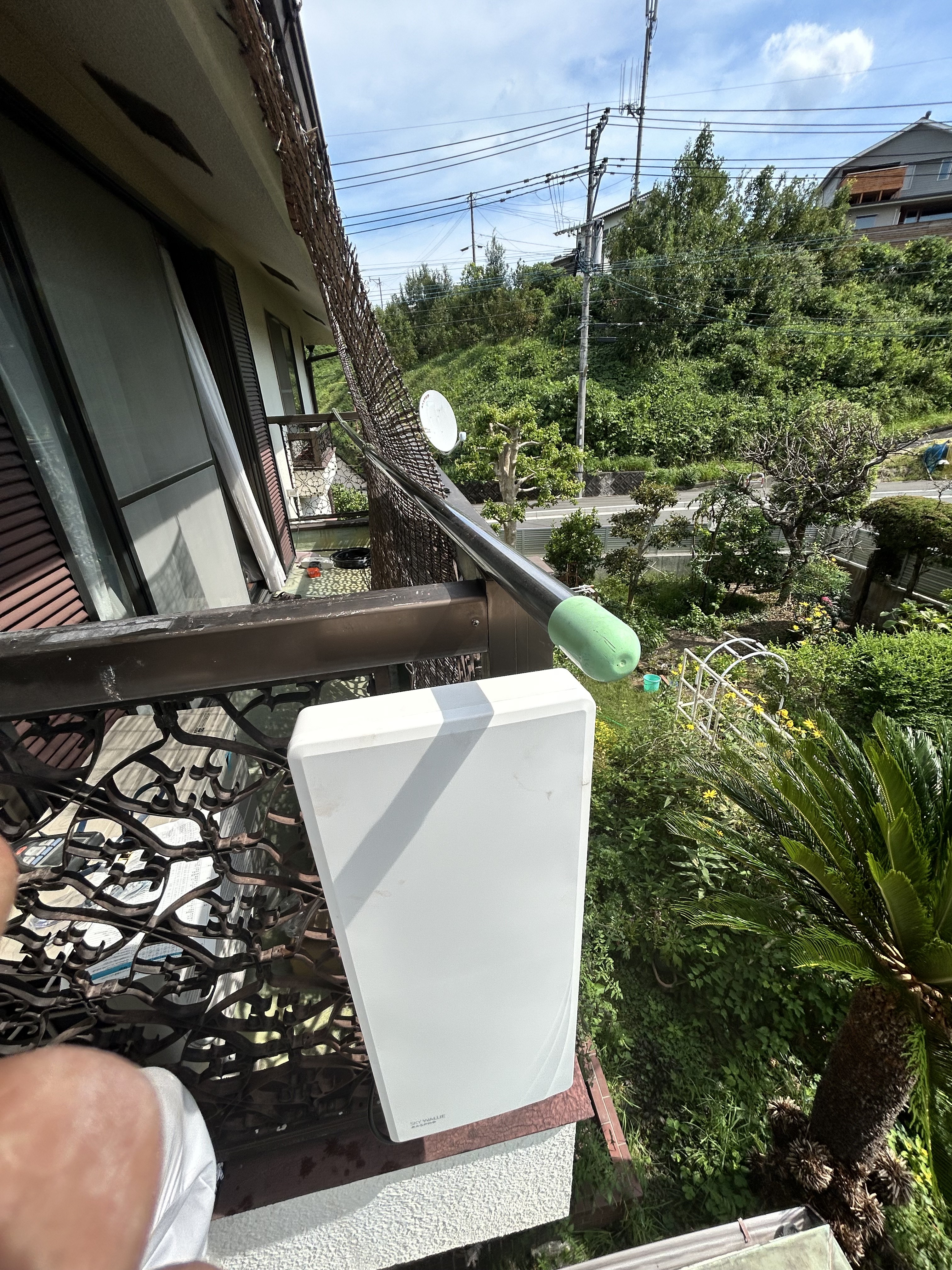 2階ベランダにて受信状況を検査。