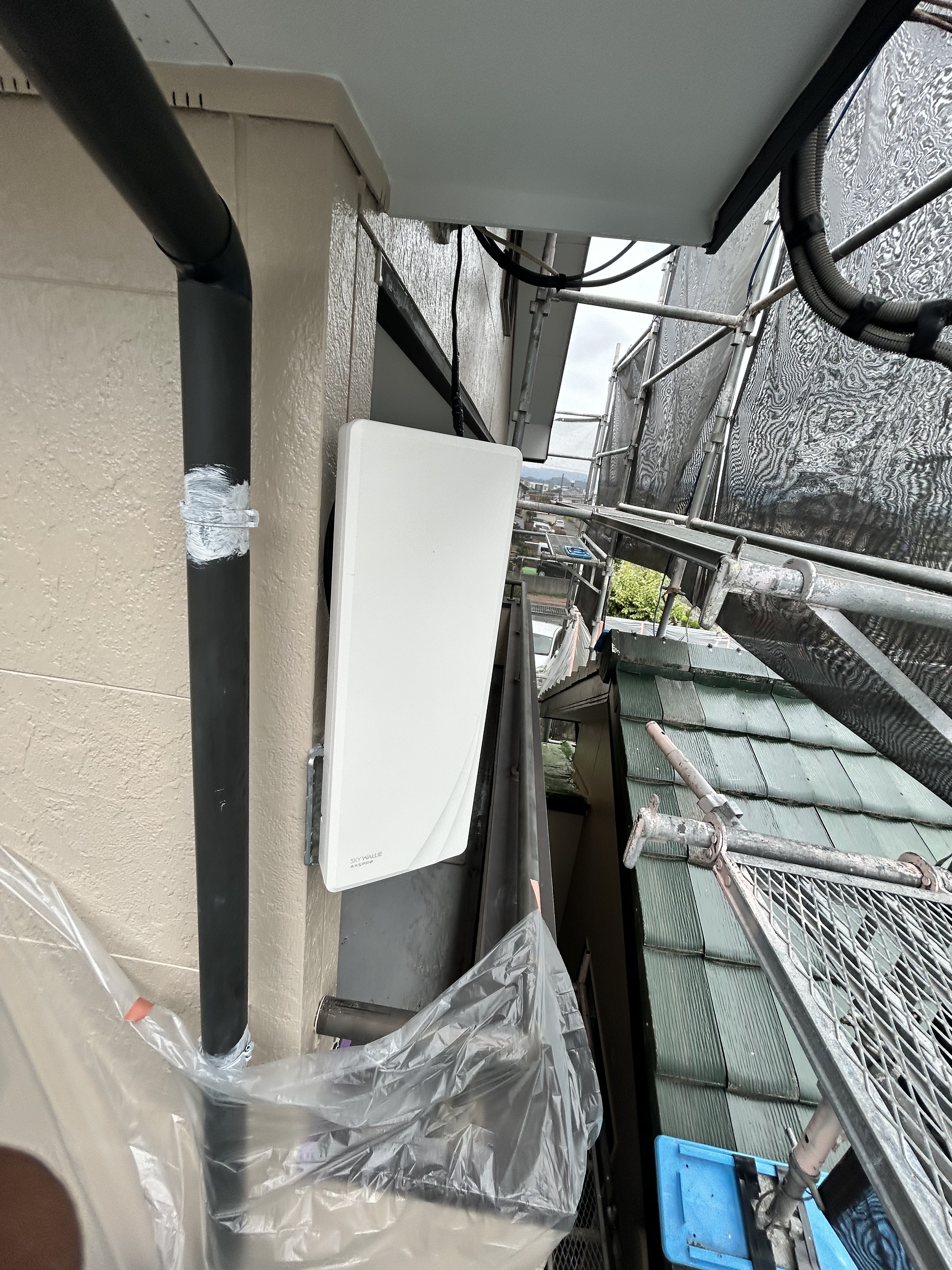 壁面デザインアンテナにて受信可能と判断しアンテナ工事をさせて頂きました。