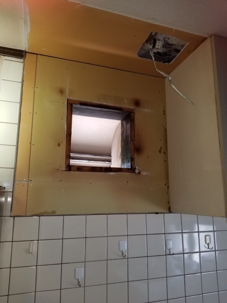 2室換気扇取り替え工事、配管がボロボロ、分譲マンション様