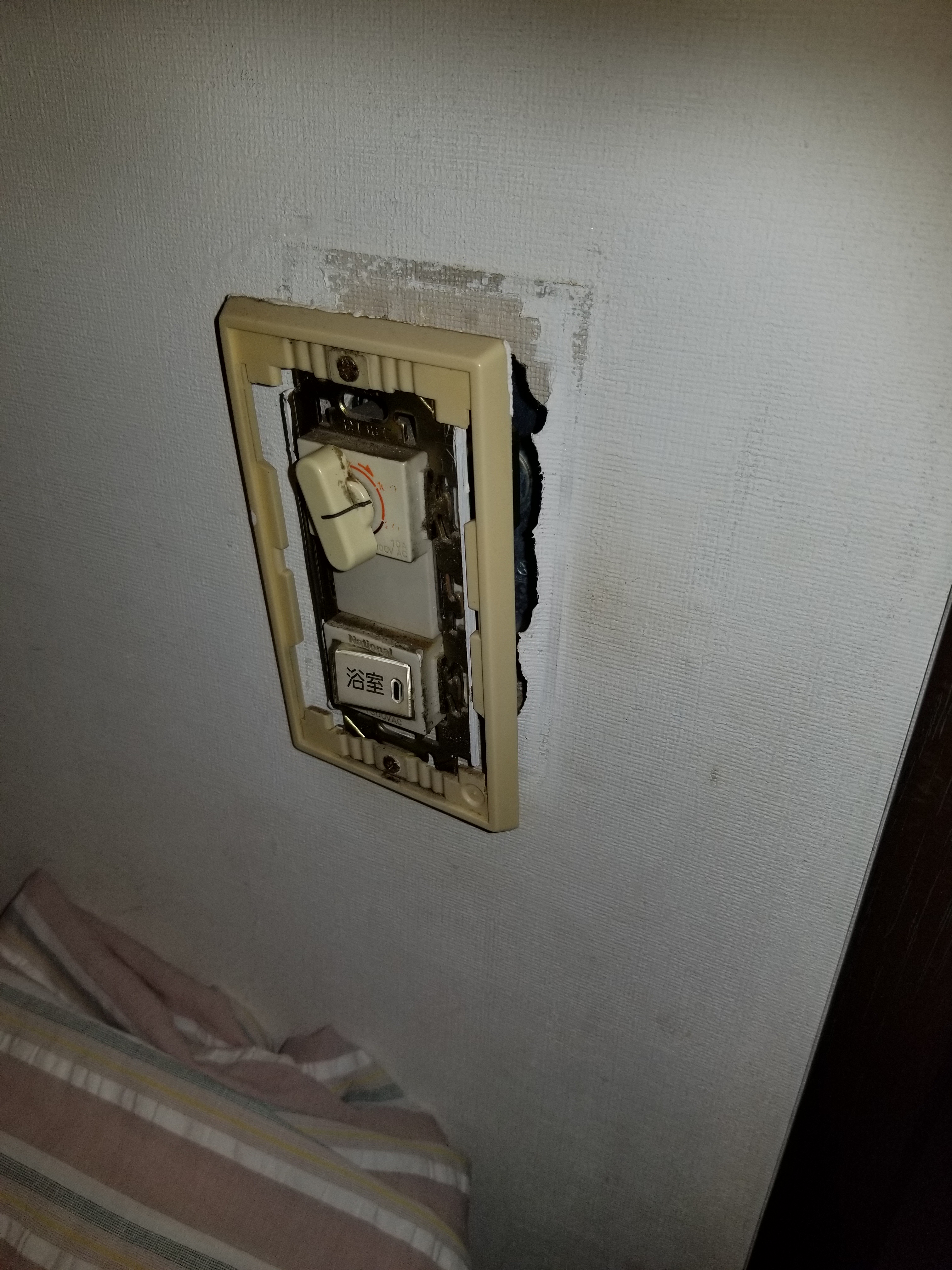 - トイレ換気扇とスイッチ取り替え、賃貸、管理会社