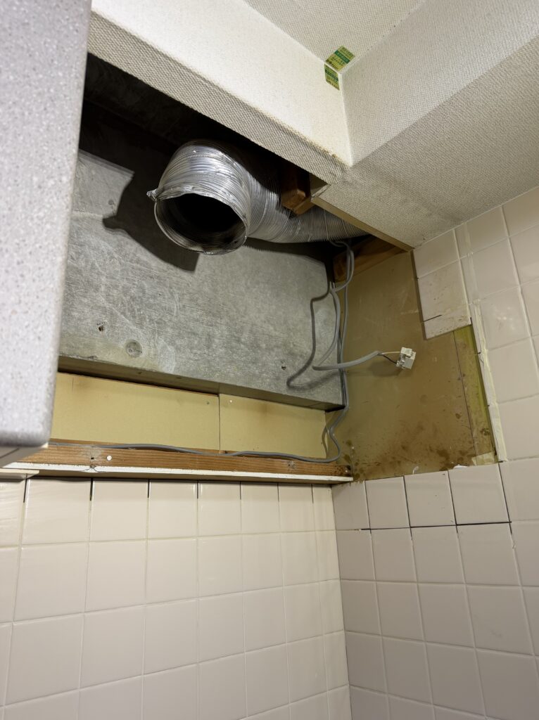 難しいレンジフード取り替え、横ダクト、牧山様邸