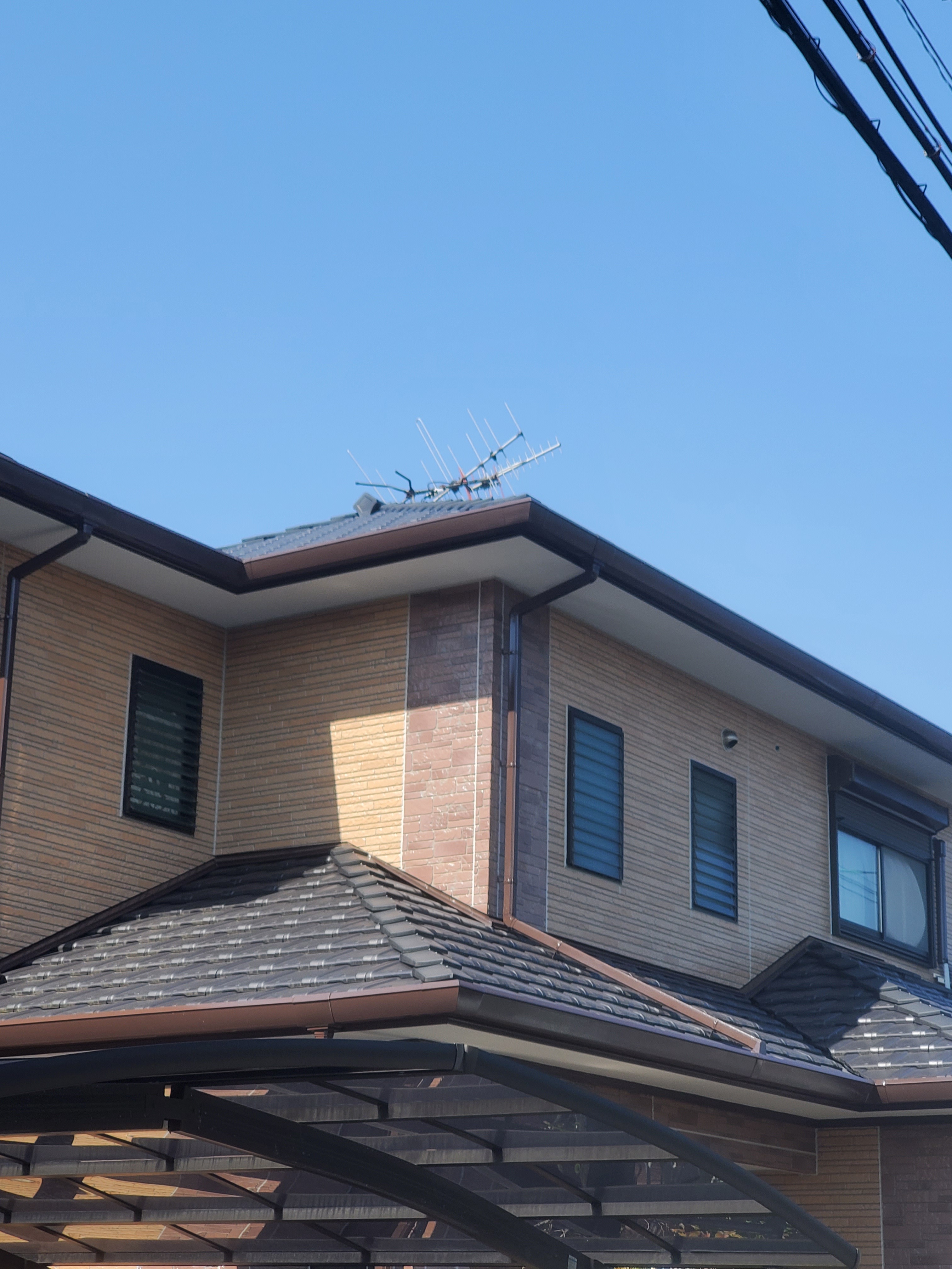 屋根上のテレビアンテナが倒れそうで…太陽光あるので心配で、高橋様邸