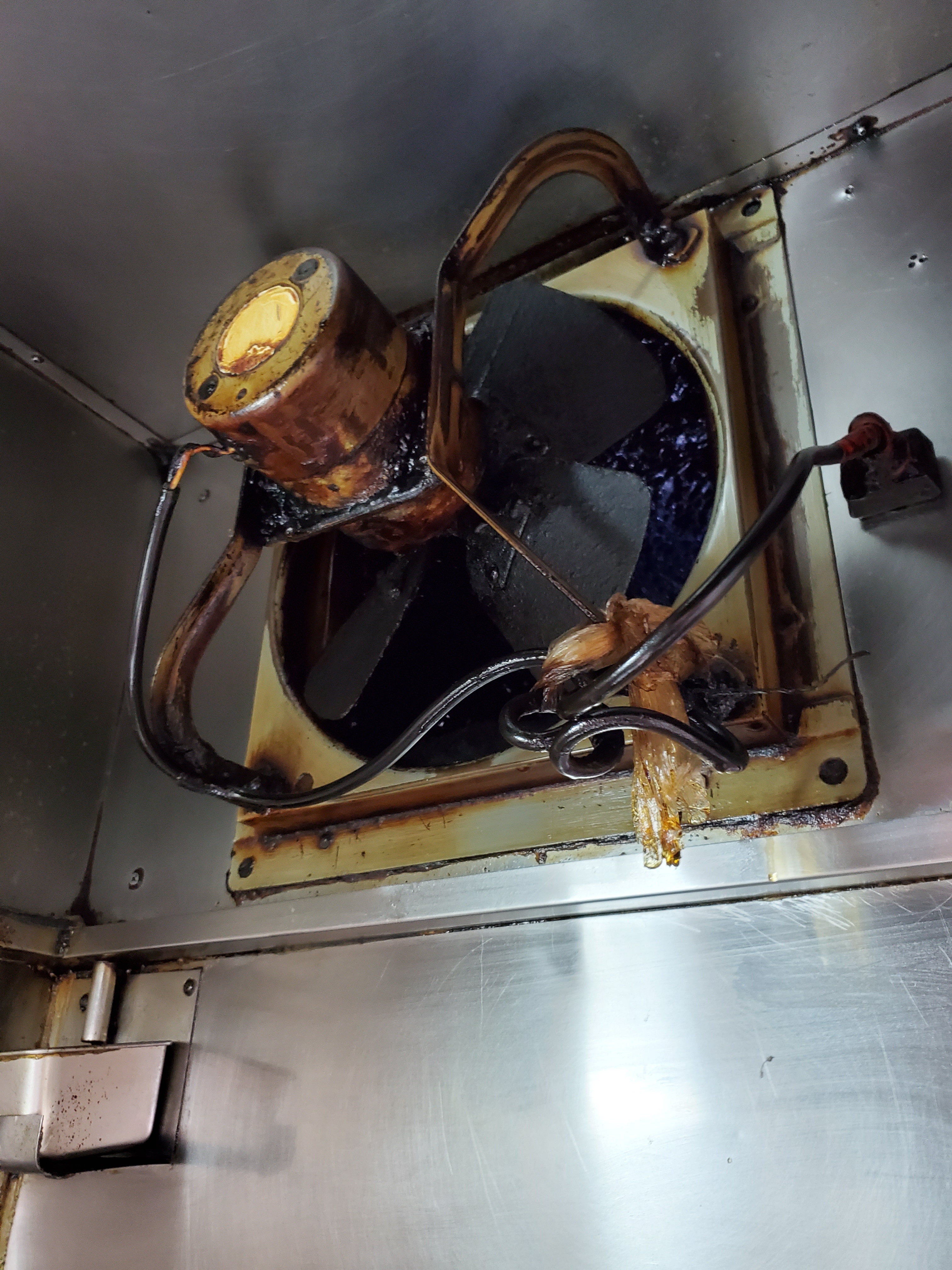中華料理様よりお電話にて至急依頼の入電いただきました。昨日よりフード内の換気扇が止まってしまい対応して欲しいとの事。