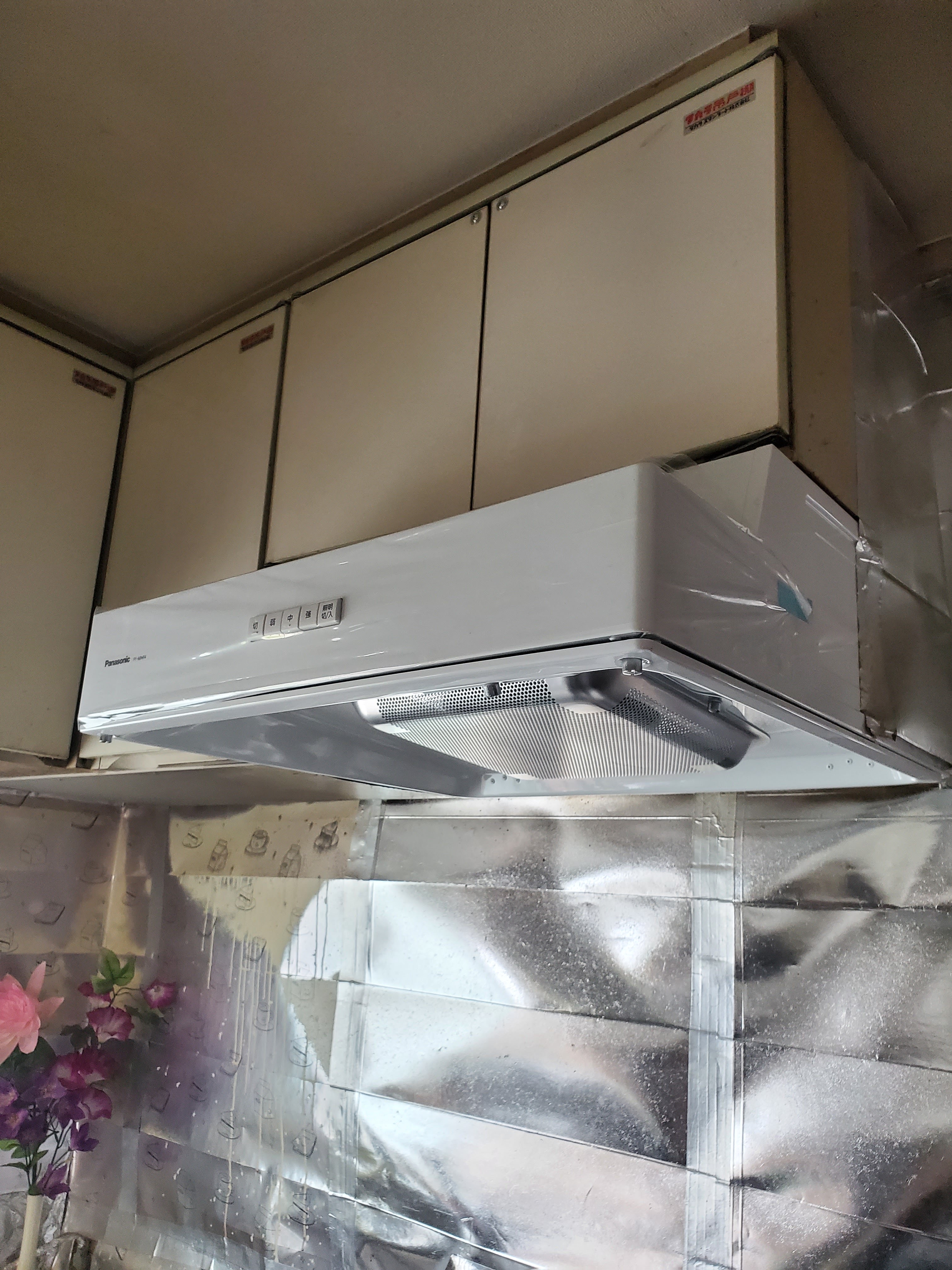 レンジフードから異音してるので、大家様より取り替えの依頼頂きました。在庫がありましたので、当日入れ替え完了。