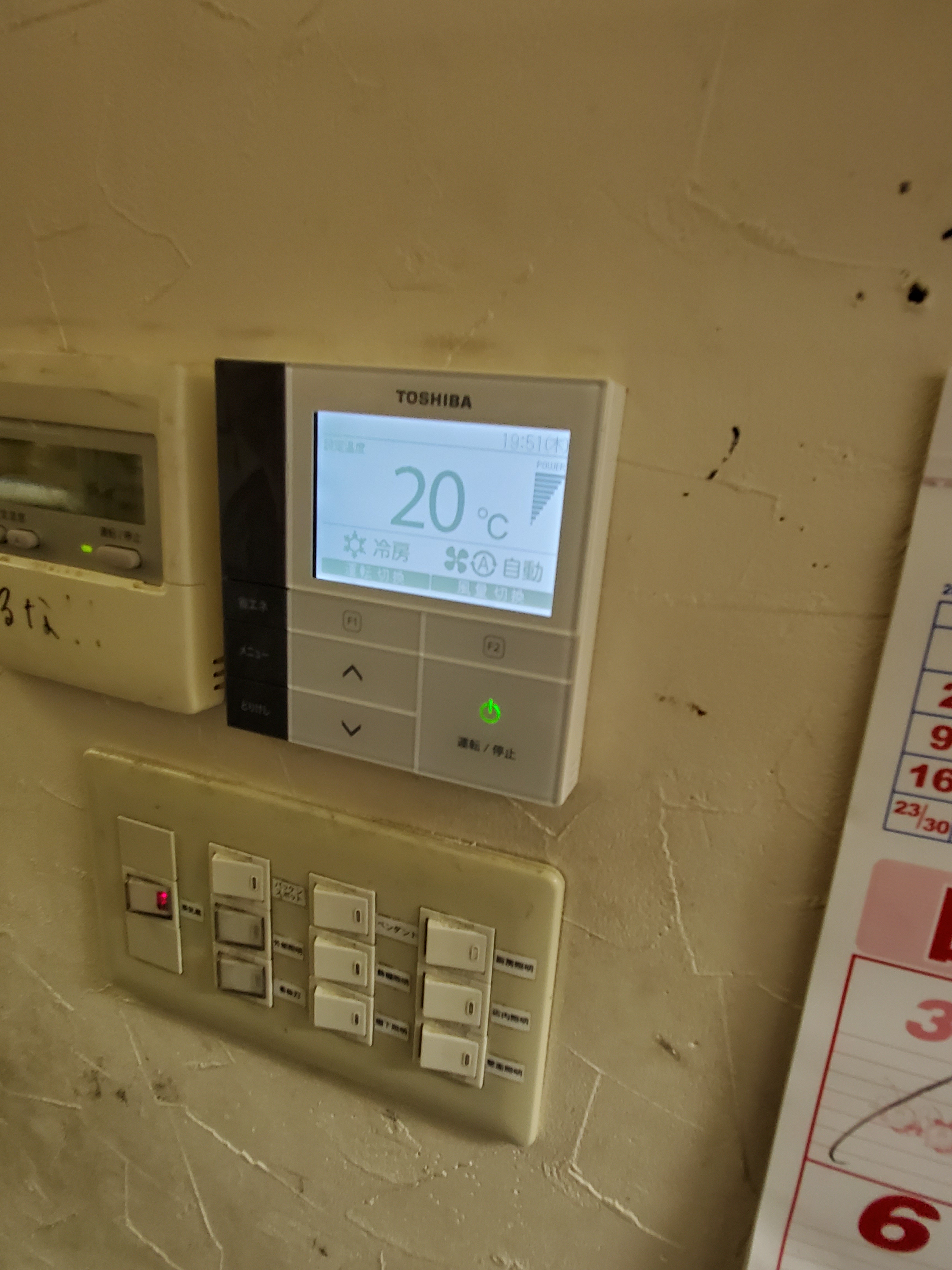 厨房内なのにも関わらず、小中学校などで見かける一般仕様の天吊り型。