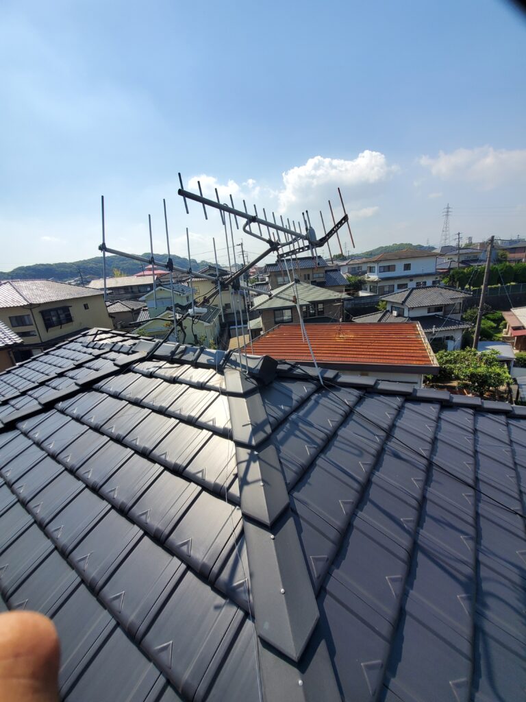 屋根上のテレビアンテナが倒れそうで…太陽光あるので心配で、高橋様邸