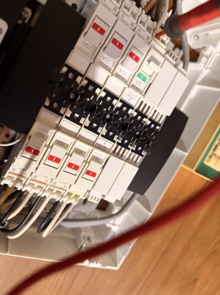 分電盤に空き回路が無く、これ以上なにもできない。もちろん配線も増やせないし、専用コンセントもできない。