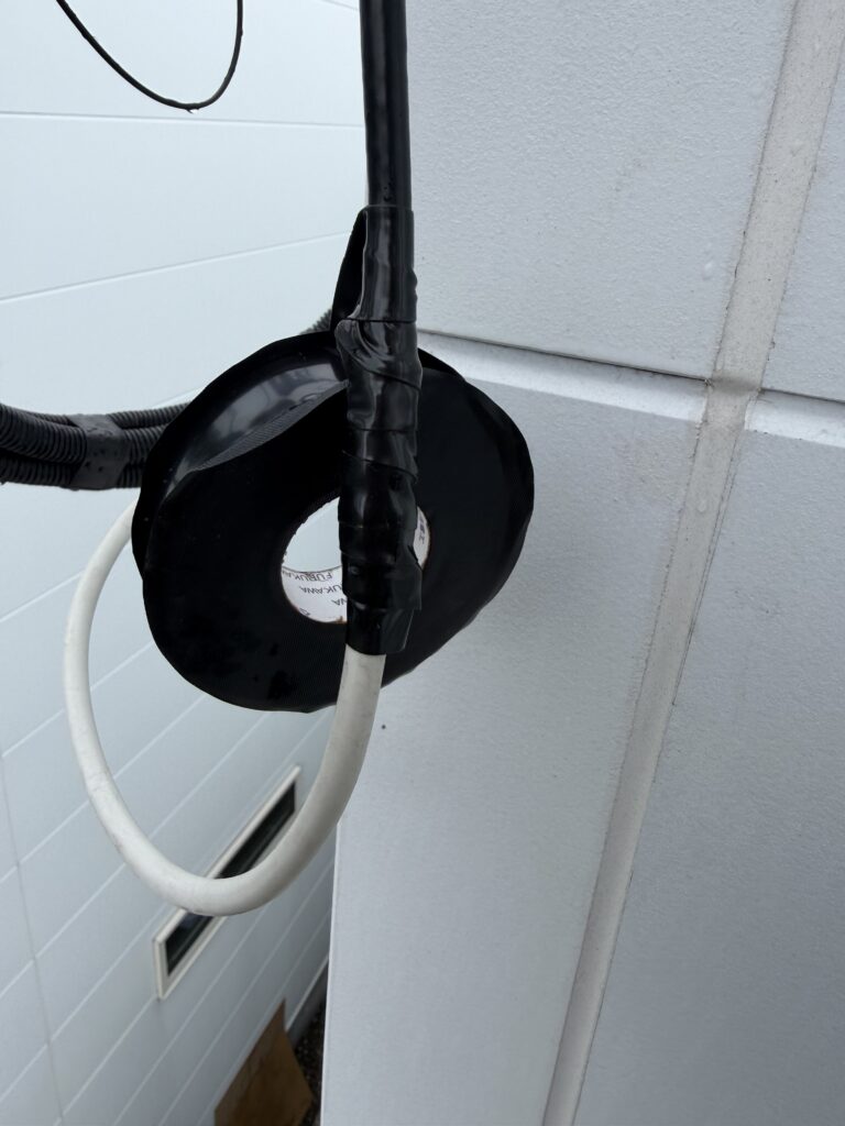 自己融着テープし、さらに上からビニテで。