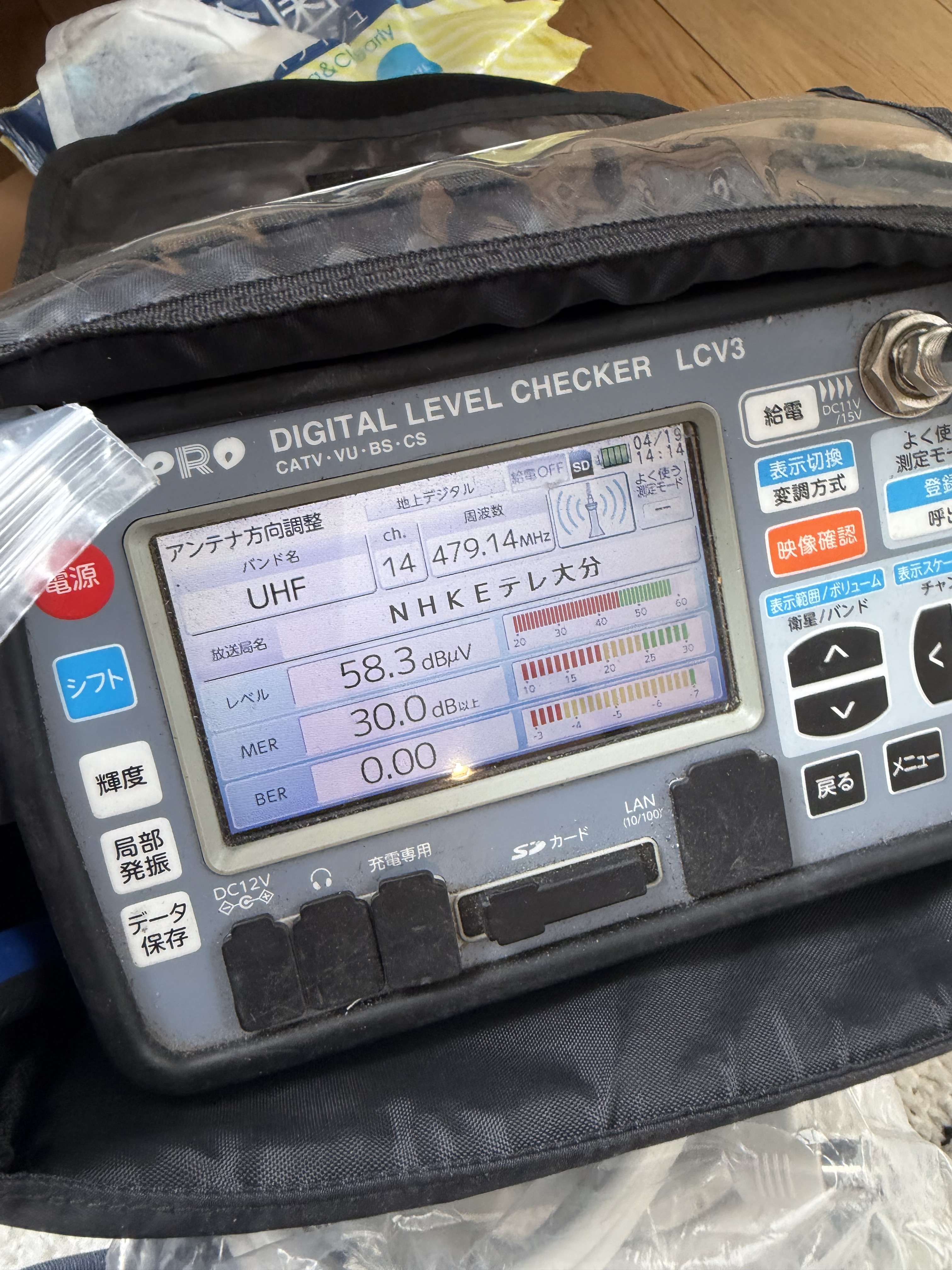 受信計測にて調査するも、壁面では不可と判断。八木式ではせっかくの新居が台無し。