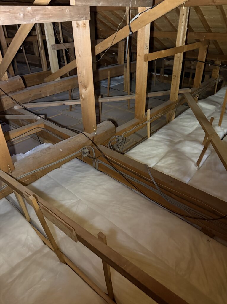 屋根裏に新しく配線。